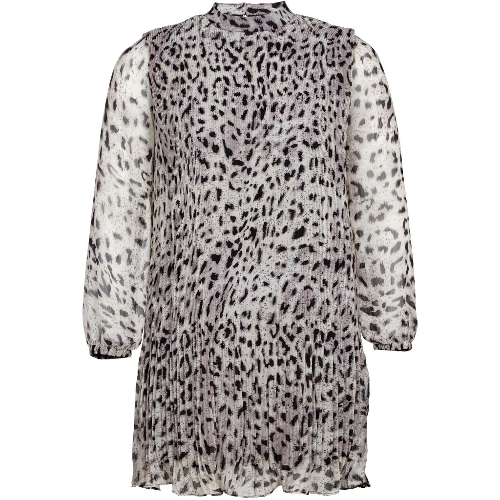 Flot kjole fra ZOEY i dyreprint. Kjolen har mini-plisseringer ned langs fronten og på ryggen, det giver en flot effekt der skjuler maven. Kjolen har elastikkant i ærmerne, stående krave og lukkes i nakken med to små knapper.Inder kjolen er femstillet i je (Læs mere)